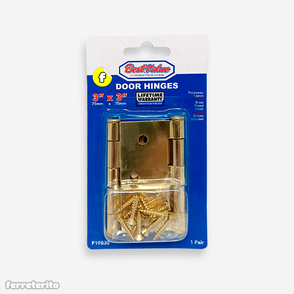 / Bisagra de 3″ x 3″ para Puerta de Madera y Metal DORADO con Tornillos (2 Unidades) BESTVALUE