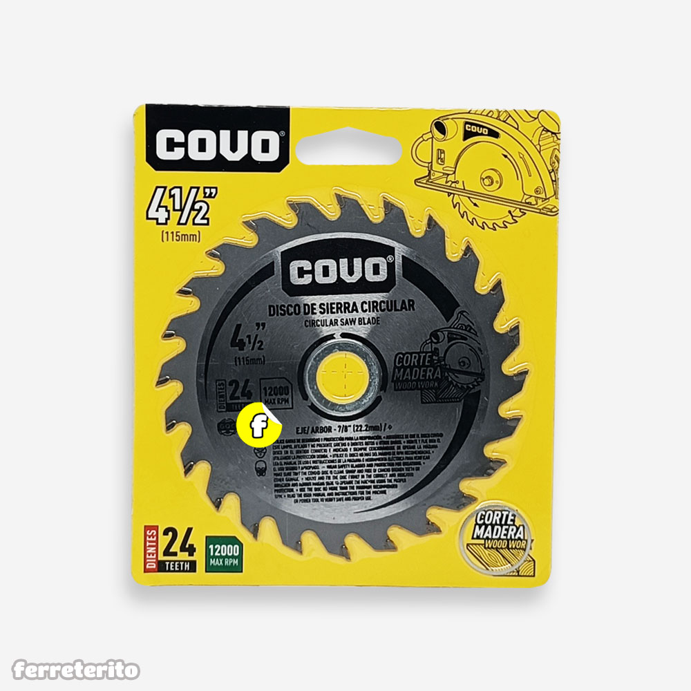 Disco de Sierra Circular 24 Dientes 4 1/2 PULG para Madera COVO (A367-S9610-CV)