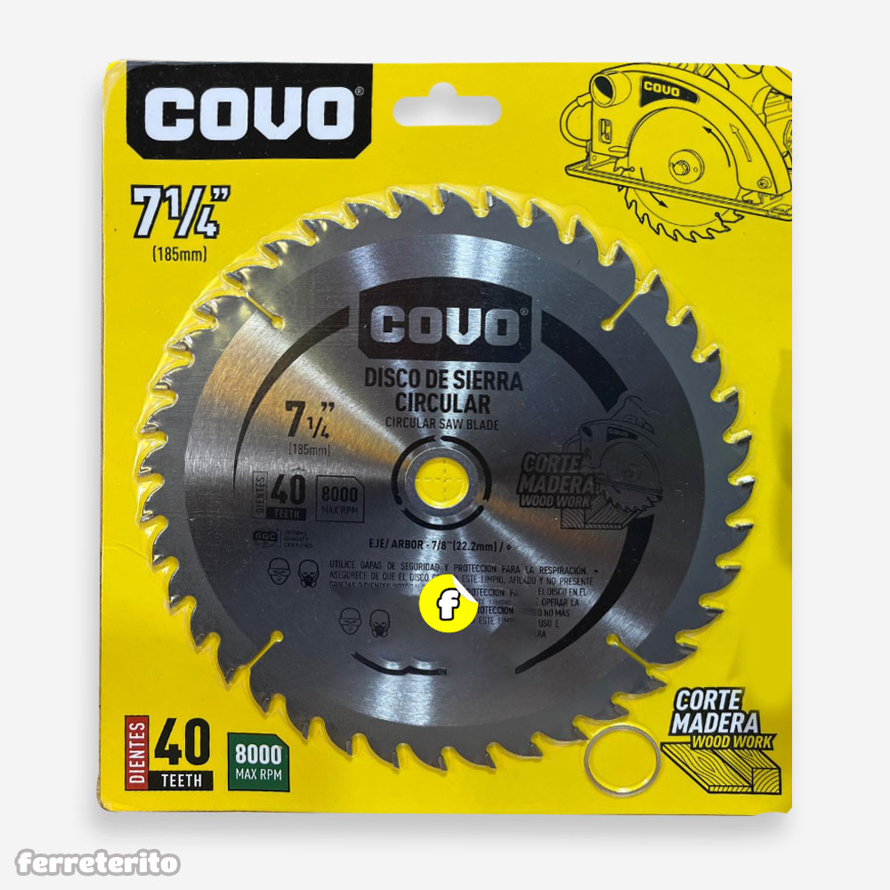 Disco de Sierra Circular 40 Dientes 7 1/4″ para Madera COVO