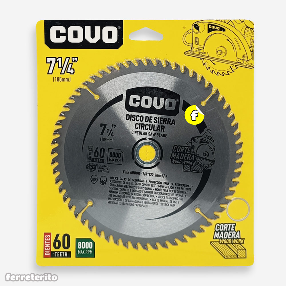 Disco de Sierra Circular 60 Dientes 7 1/4″ para Madera COVO (CV-CW-7) cantidad